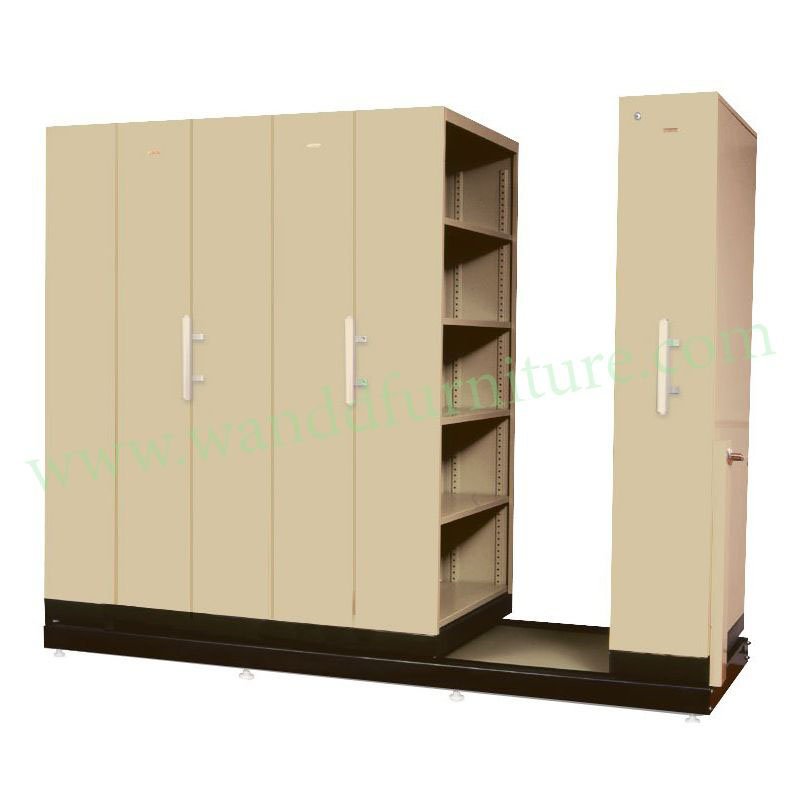 - มีตู้เดี่ยวยึดอยู่กับที่ด้านข้าง และตู้ติดกันเป็นคู่สามารถเลื่อนไปมาได้อยู่ระหว่างกลาง พร้อมตู้เดี่ยวสามารถเลื่อนไปมาได้อยู่ด้านข้างอีกด้านหนึ่งและเป็นตู้ที่ใช้ปิดล็อคเมื่อเลิกใช้งานด้วยกุญแจแบบเขาควายโดยล็อคที่ฐานล่าง ระหว่างตู้ปูพื้นด้วยไม้ปาร์ติเกิ้ลเคลือบผิวเมลามีนสีเทา หนา 19 มม. มือจับอลูมิเนียมยึดติดอยู่ด้านข้างของตู้