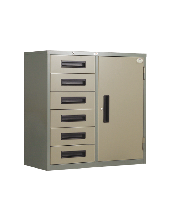 - กุญแจล็อค 1 ชุด (ตามมาตราฐาน AISI / BIFMA X5.5-1998) ที่ด้านบน โดยล็อคแบบ CENTRAL LOCK เลื่อนเข้าออกด้วยรางลูกล้อ และกุญแจบานประตูอิสระ 1 ชุด